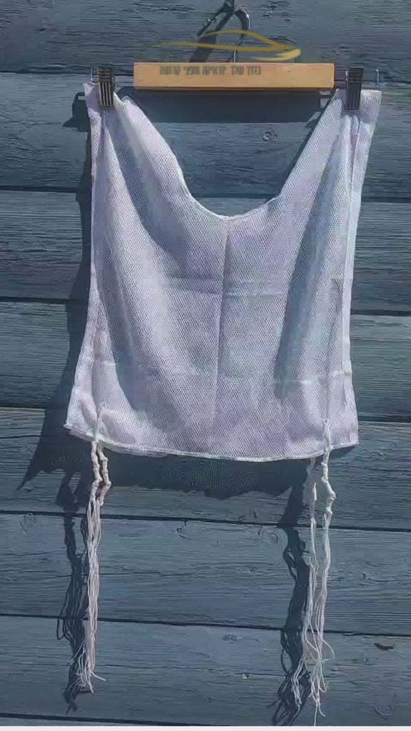 היכרות עם היצירה: ציצית מבד רשת עשויה מבד פוליאסטר דיאלן, הבד מאוורר, מוצר מלכות ירושלים